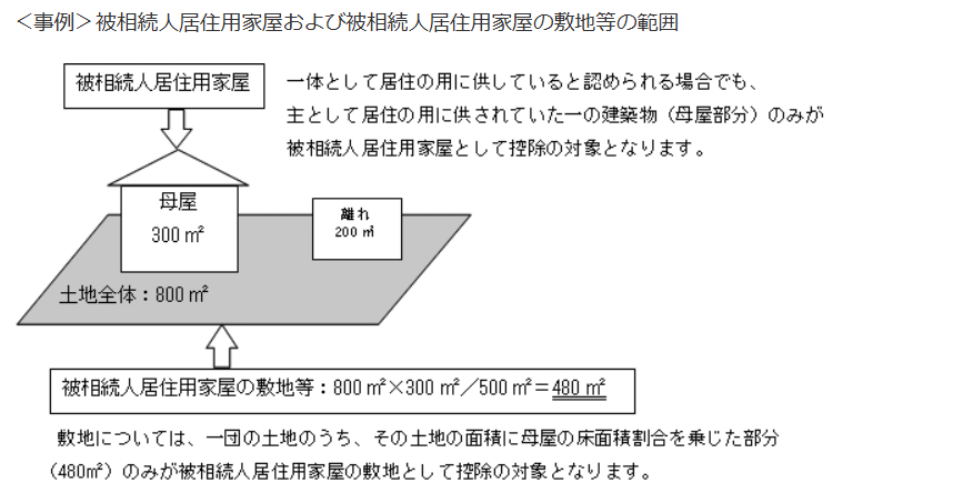 土地については、母屋の敷地として使用されていた部分が対象となります。